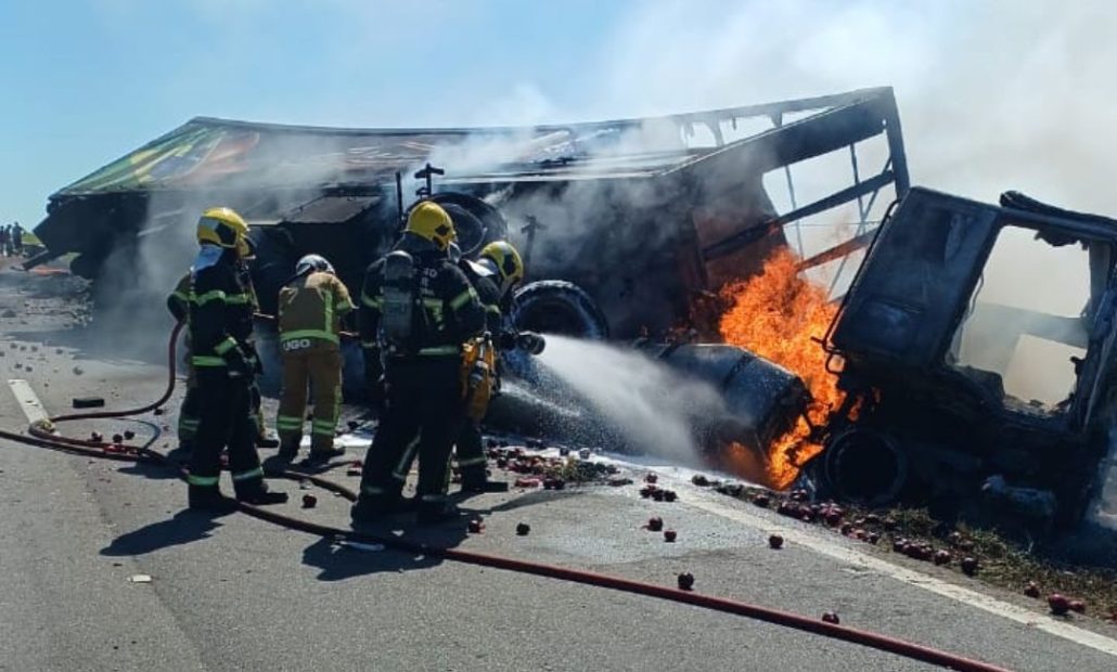 Um incêndio de grandes proporções atingiu uma carreta que transportava carga de cebola na tarde desta quarta-feira (17), na BR-101, no trecho do Morro Azul, em Jaguaruna, no Sul de Santa Catarina. A ocorrência foi registrada por volta das 14h24.