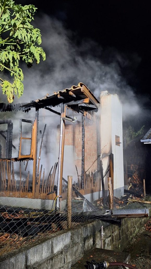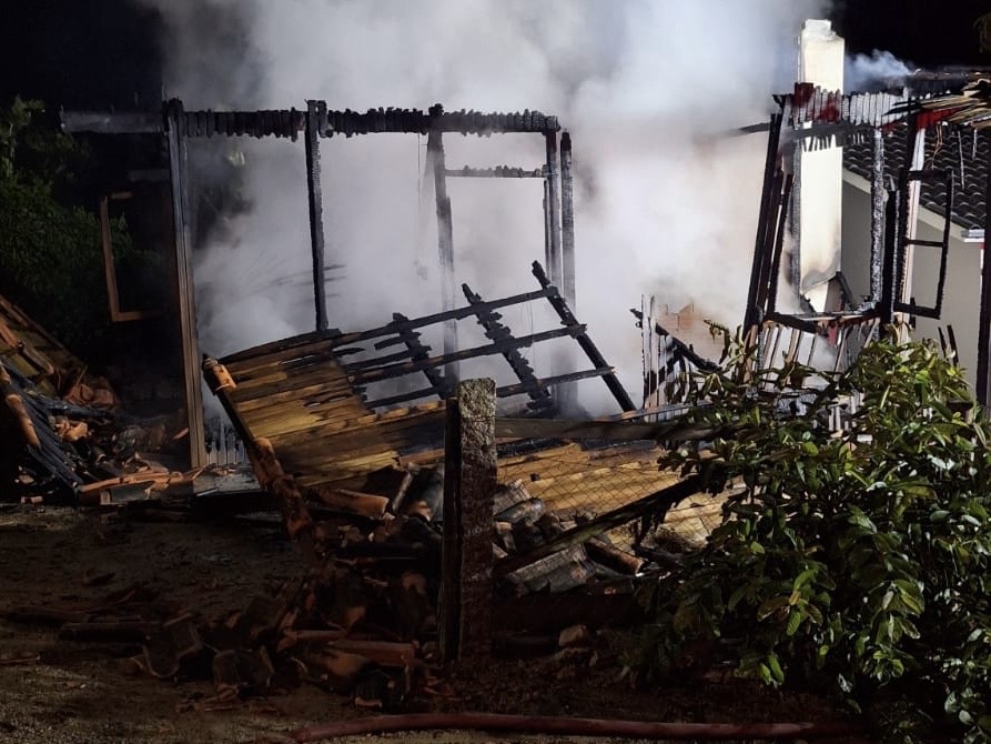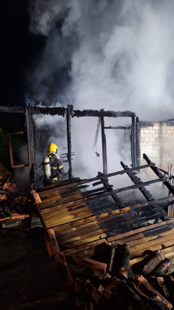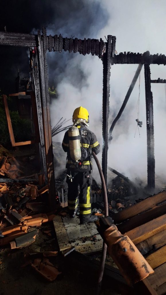 Casa de madeira pega fogo e fica completamente destruída em cidade do Sul catarinense; FOTOS