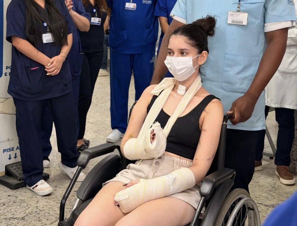 Alana ficou quase um mês internada na Clínica São Gonçalo e passou por várias cirurgias. Ela recebeu alta hospitalar no dia 4 de março e continua o tratamento em casa.