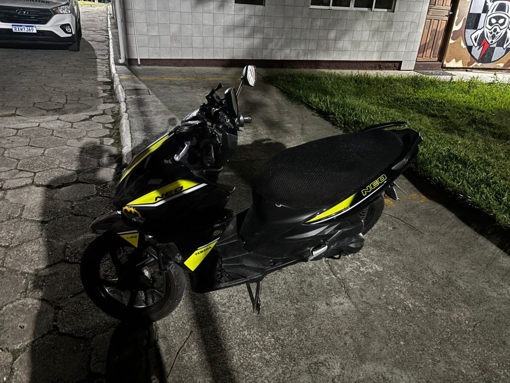 A motocicleta usada por ele permaneceu no local. Durante os procedimentos, o Centro de Operações da Polícia Militar (Copom) informou que o veículo havia sido furtado instantes antes em uma rua próxima. A moto foi encaminhada à Central de Plantão Policial da Capital para registro da ocorrência.