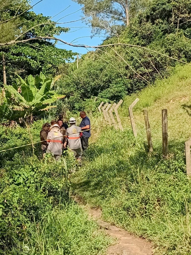 Três pessoas da mesma família sofreram descarga elétrica após entrarem em contato com um fio energizado caído no chão enquanto passavam por um trecho da trilha da Praia dos Amores, no bairro Ribanceira, em Imbituba (SC), na tarde desta terça-feira (31).