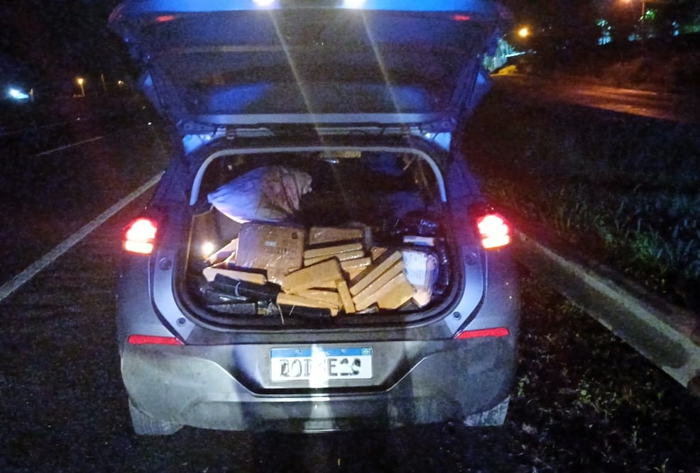 Depois de cinco quilômetros de perseguição, o veículo foi abordado pelos policiais. Durante a inspeção no interior do utilitário, os agentes encontraram os tabletes da droga no porta-malas e banco traseiro.