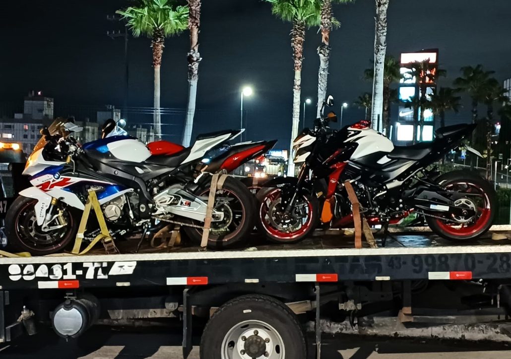 As motos, todas modelos esportivos de alta cilindrada, estavam equipadas com suportes articulados com dobradiças, que permitiam levantar a placa para a posição horizontal, dificultando a leitura dos caracteres — uma prática usada para burlar radares e a fiscalização eletrônica.