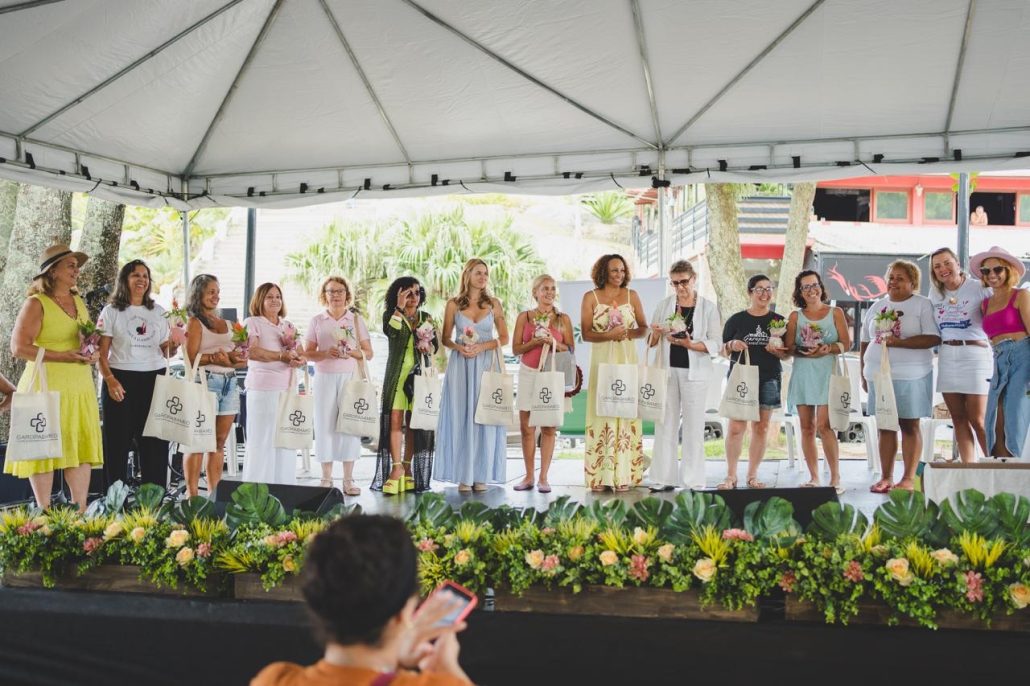 Um evento feito por mulheres para mulheres e não poderia faltar reconhecimento. Na homenagem “Mulheres que Fazem a Diferença”, uma lista com profissionais da região reforçou realizações de passado, presente e futuro da cidade. Coletivos femininos, atletas, professoras, empresárias subiram ao palco e foram agraciadas com presentes e com a apresentação da cantora Karen Rosa e do grupo Anitas de Garopaba.