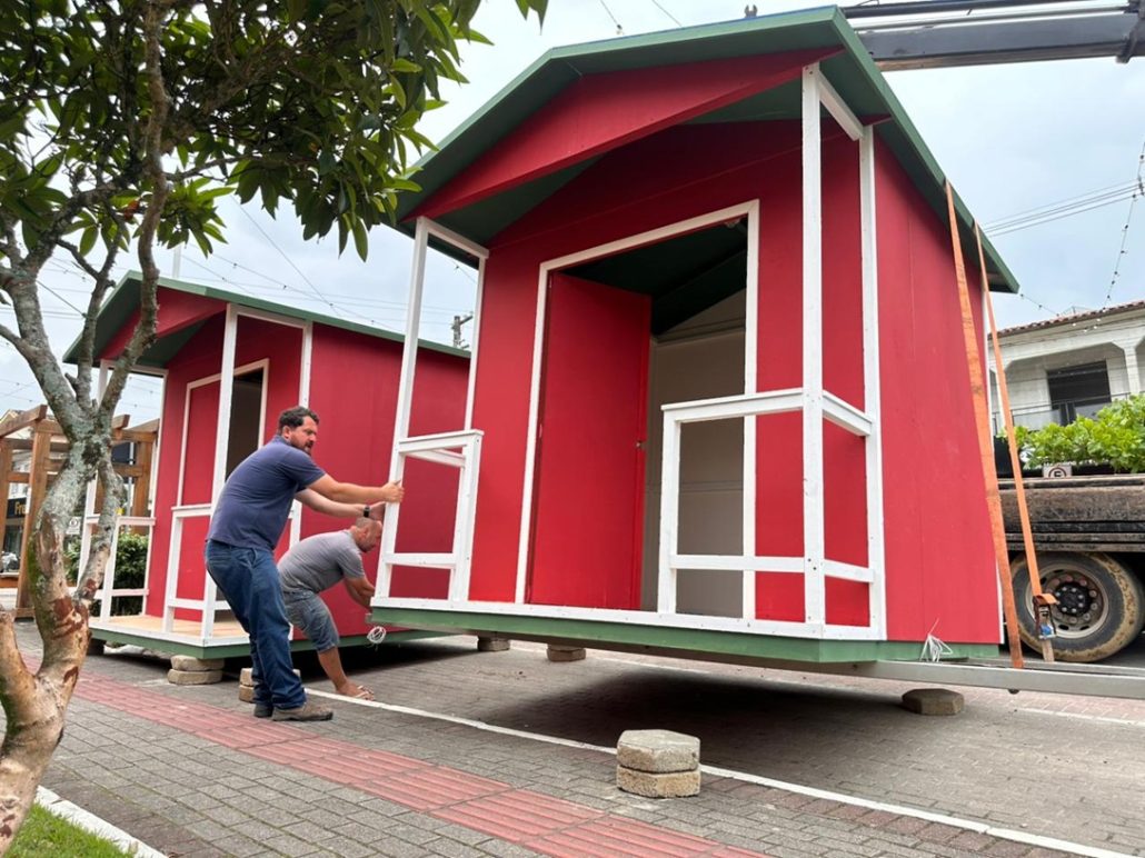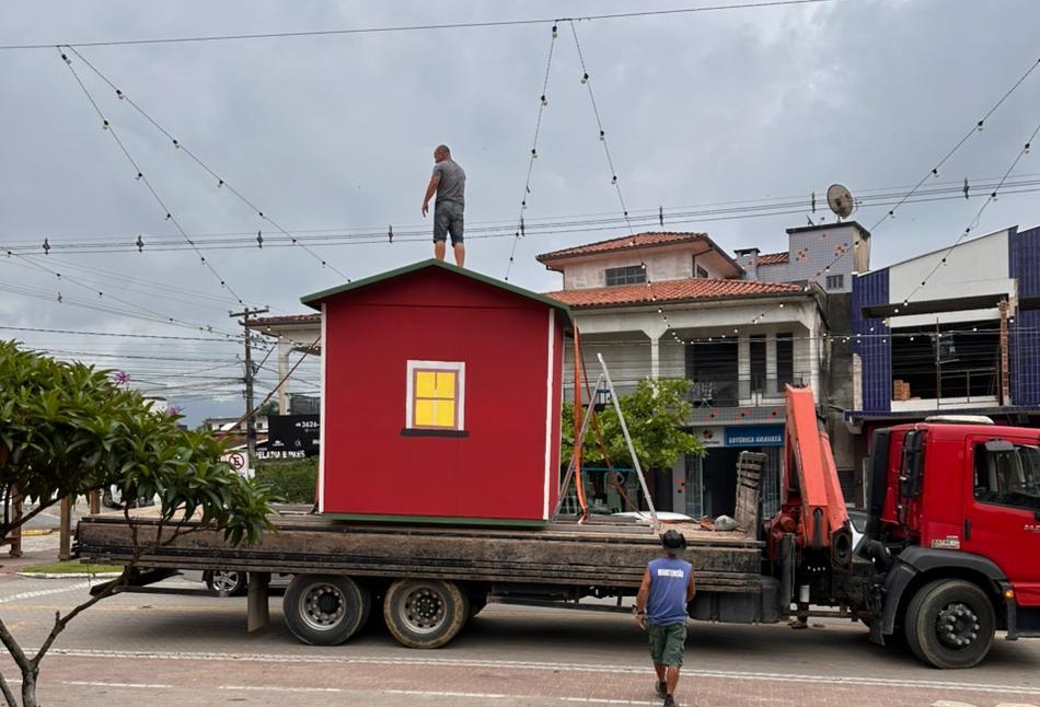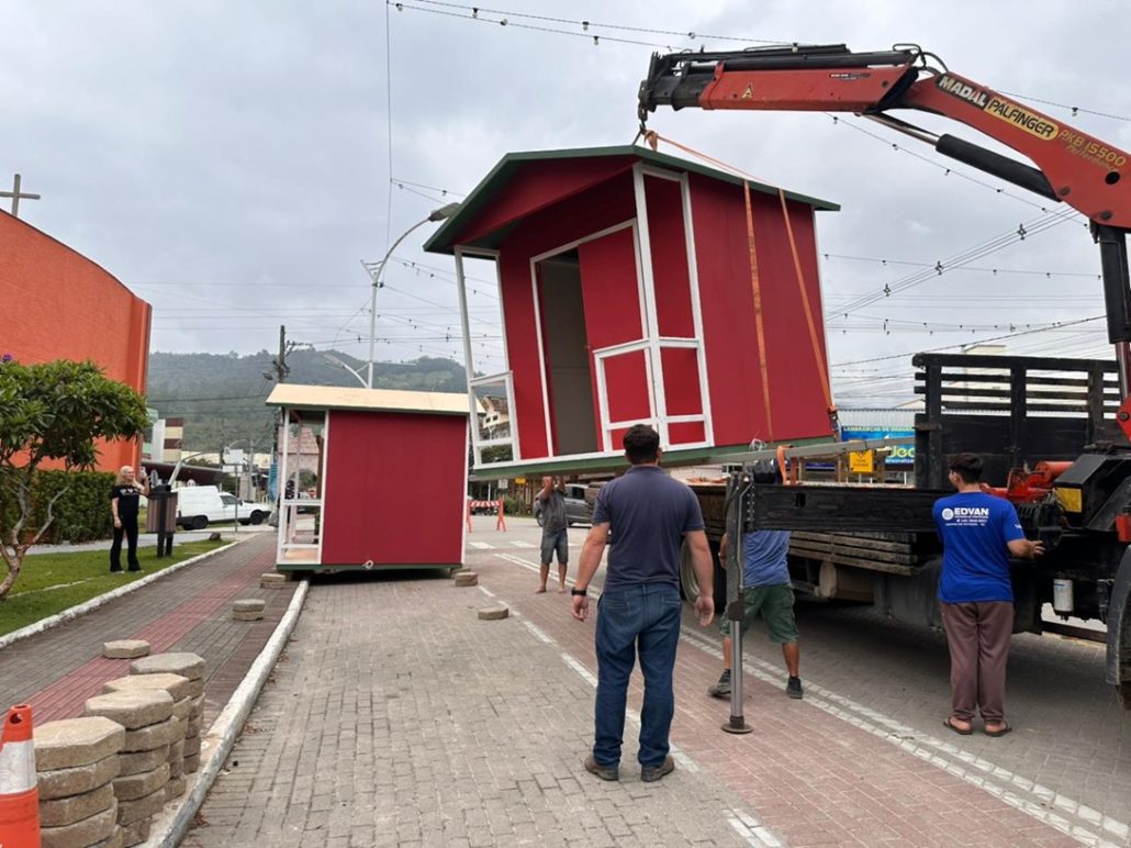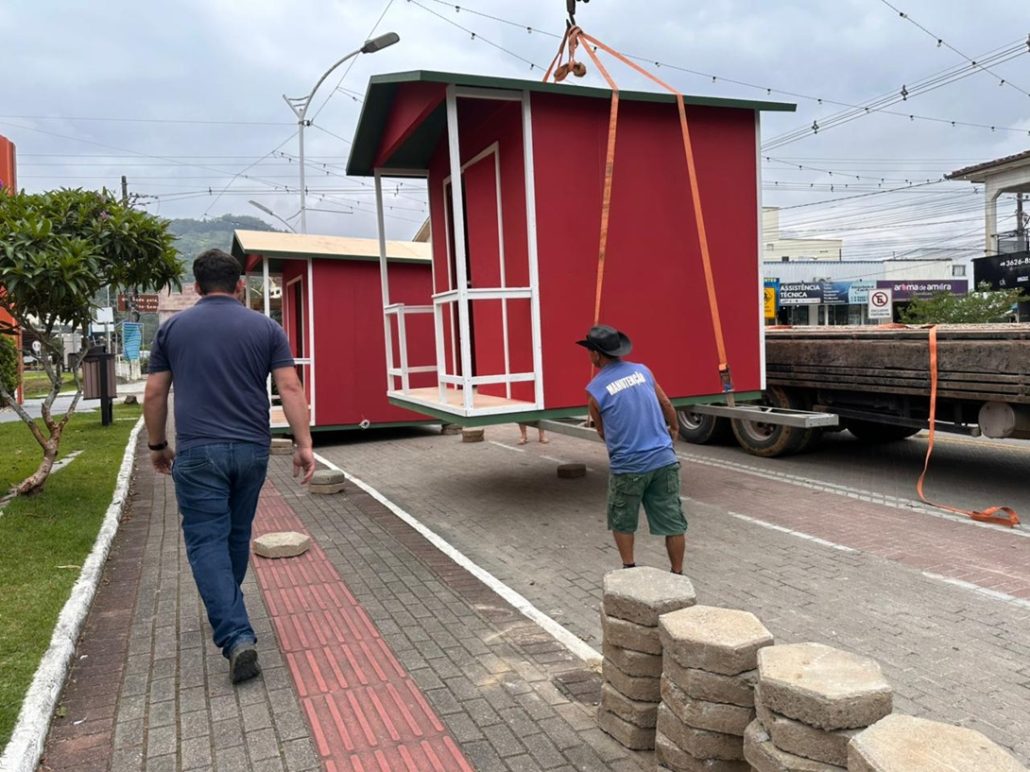 As primeiras casas da Alameda Comercial da Vila de Natal começaram a ser instaladas nesta segunda-feira (03), marcando o início da montagem do cenário que encantará moradores e visitantes de Gravatal, no Sul de Santa Catarina.