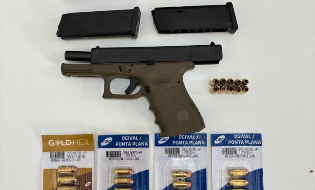 Uma pessoa foi presa por porte ilegal de arma de fogo, e os policiais apreenderam uma pistola Glock calibre .380.