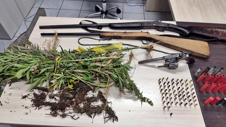 Durante a operação, os militares também apreenderam três armas de fogo — um revólver calibre 38, uma carabina calibre 24 e um rifle artesanal calibre 28 — além de mais de 60 munições de diversos calibres.