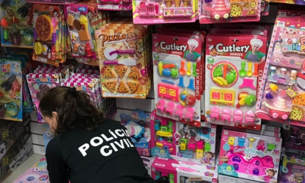 Cinco estabelecimentos comerciais de Porto Alegre foram vistoriados, resultando na apreensão de 680 kg de mercadorias falsificadas e na prisão de cinco pessoas pelos crimes de contrabando e contra as relações de consumo. De acordo com a corporação, a principal irregularidade encontrada foi a comercialização de brinquedos sem as especificações técnicas exigidas por órgãos reguladores.