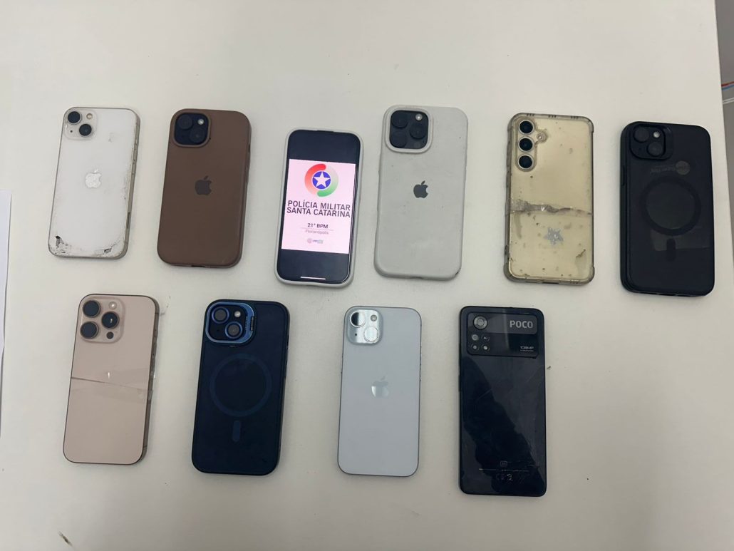 Nove celulares furtados durante um evento na região Norte de Florianópolis foram recuperados pela Polícia Militar na madrugada desta sexta-feira (21). O suspeito de cometer os crimes foi detido.
