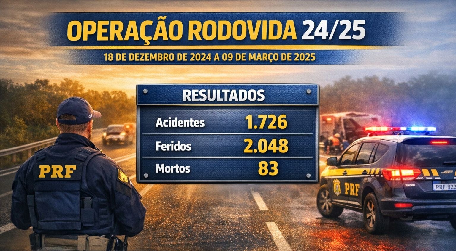 A Polícia Rodoviária Federal (PRF) iniciou nesta quinta-feira (18), em todo o país, a Operação Rodovida, maior ação do ano de enfrentamento à violência no trânsito. Ela abrange as festas de Natal e Ano Novo, a temporada de verão e só termina depois do Carnaval.