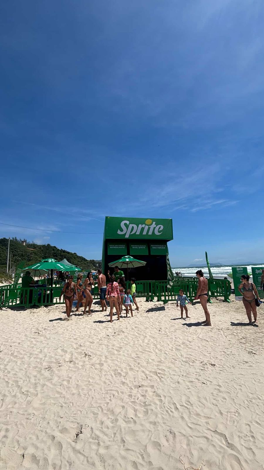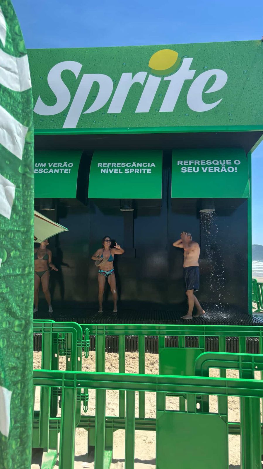 O “Chuveirão Sprite” chegou à Praia Central de Garopaba (SC) para refrescar e divertir os visitantes neste calorão. A ativação, que imita uma máquina gigante de refrigerante de fast-food, começou na manhã desta sexta-feira (16) e vai até domingo (18). A ação está acontecendo na altura do Morrinhos.