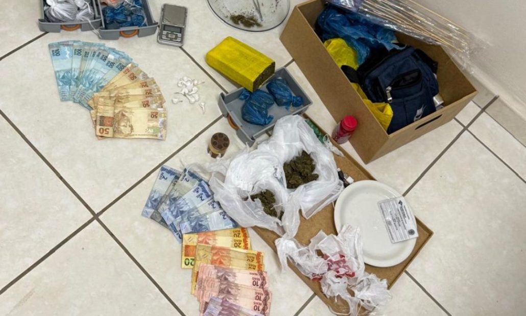De acordo com a corporação, o homem estava acompanhado de um adolescente de 16 anos e tentava entregar entorpecentes quando foi flagrado. Durante a abordagem, foram apreendidos porções de maconha e cocaína, além de celulares.