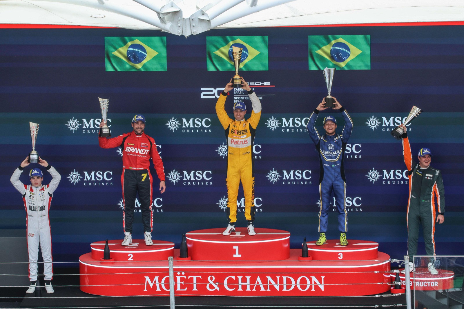 As expectativas se confirmaram: mais uma vez o piloto catarinense Jeff Giassi subiu ao pódio da Porsche Cup C6 Bank. Neste domingo (9), ele cruzou a linha de chegada em terceiro lugar no campeonato de Sprint (classe Carrera Cup) – etapa preliminar do Grande Prêmio São Paulo de Fórmula 1, em Interlagos (SP). Foi o 11º pódio conquistado por ele em 15 competições da Porsche Cup.