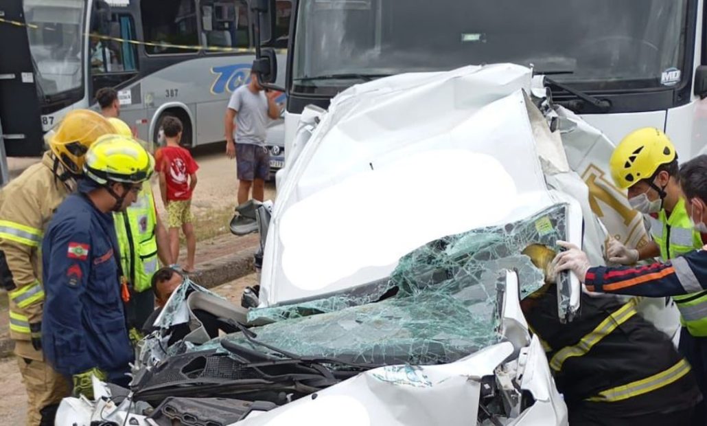 Já o passageiro, que ocupava o banco do carona, ficou preso às ferragens e precisou de um resgate de alta complexidade. Com o impacto, a estrutura traseira do veículo e os materiais que estavam sendo transportados foram arremessados contra a cabine, prensando a vítima contra o painel.