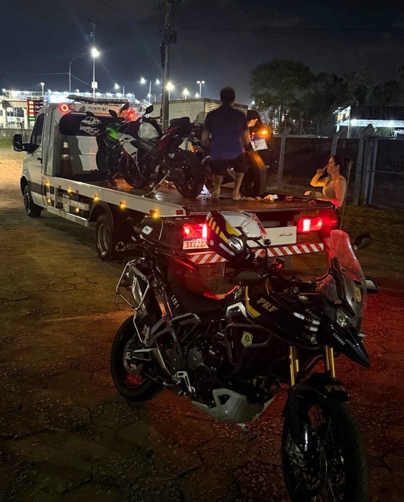 Três homens que conduziam motocicletas esportivas foram presos na madrugada desta sexta-feira (24) na BR-101, em Palhoça, na Grande Florianópolis. As ocorrências foram registradas por policiais rodoviários federais do Grupo de Motociclismo Policial (GMP) e envolveram crimes como adulteração de placa, direção perigosa e embriaguez ao volante.