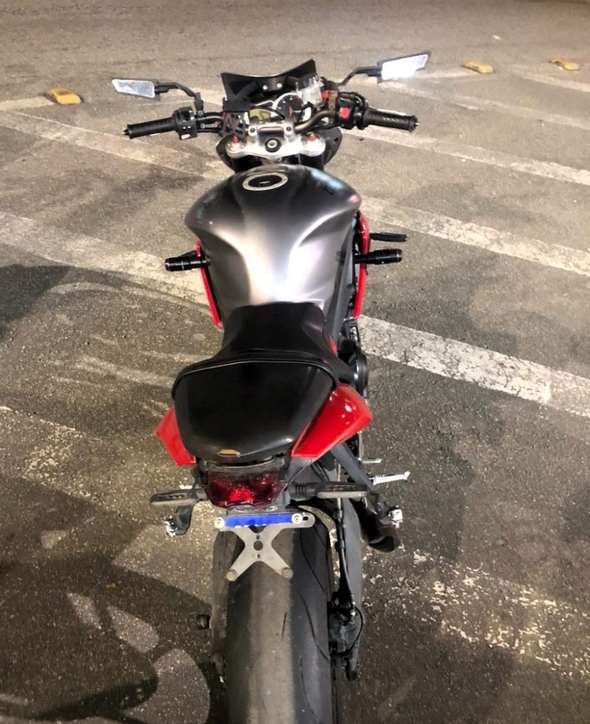 Em outra ocorrência, um motociclista foi flagrado em alta velocidade e trafegando entre os carros. Ao perceber a presença da polícia, ele fugiu por cerca de seis quilômetros, até ser interceptado. A moto não possuía placa e o condutor não tinha Carteira Nacional de Habilitação (CNH). Ele também foi levado à delegacia e responderá por dirigir sem habilitação, gerando perigo de dano.